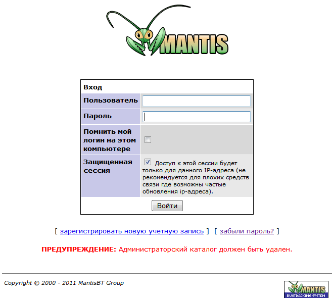 В качестве примера продемонстрируем работу утилиты в случае сайта, на котором работает система баг трекинга Mantis. Сайты с установленной системой Mantis можно найти, например, используя такую строку поиска