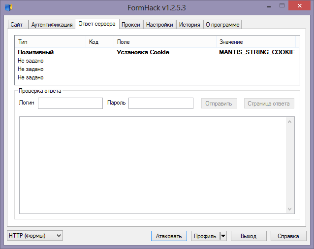 В случае Mantis никто не мешает скачать пакет нужной версии, установить у себя, создать для себя пользователя и посмотреть как это работает. А способ посмотреть FormHack предоставляет. Вводим неправильный логин / пароль в блок Проверка ответа и жмем Отправить. Затем то же самое с правильным логином и паролем. Сравниваем ответы сервера:
